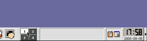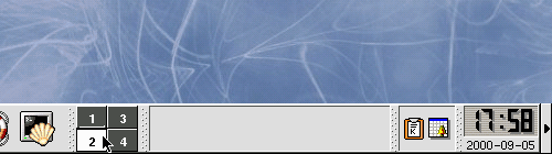 You can easily switch between virtual desktops with a click on one of the desktop buttons in the kicker.